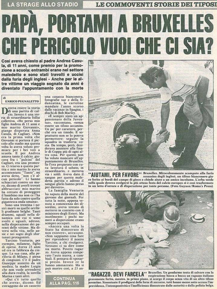 La sera del 29 maggio Anna era seduta davanti alla tv. "Ho subito avuto un bruttissimo presentimento e ho iniziato a chiamare i miei cognati per chiedere se sapevano in che settore dello stadio erano Andrea e Giovanni". Purtroppo erano proprio nel settore Z, quello dove scoppiarono i disordini e dove crollò il parapetto sotto il quale morì la stragrande maggioranza delle trentanove vittime, compresi Andrea e Giovanni. "Di mio marito me l'hanno detto quasi subito, quella stessa notte, di Andrea invece...". Il ricordo si fa troppo doloroso. E le parole, così come le domande, non servono più. Non hanno senso.