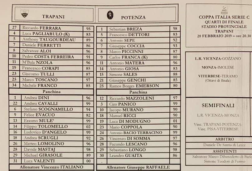 Trapani-Potenza (VEDI QUI TUTTI I DATI DELLA GARA)