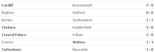 CALCIO PREMIER LEAGUE:25°GIORNATA (02/02/2019)