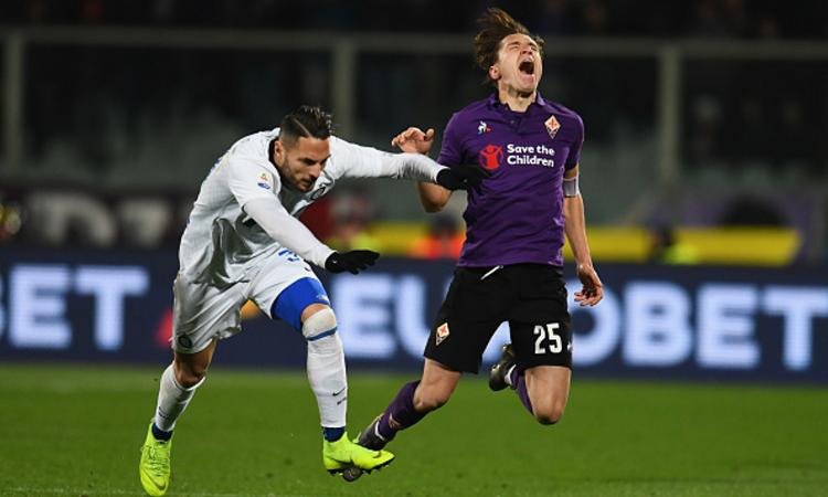 Fiorentina-Inter (NELLA FOTO IN ALTO DANILO D'AMBROSIO FERMA FALLOSAMENTE FEDERICO CHIESA.VEDI QUI TUTTI I DATI DELLA GARA VEDI QUI LA SINTESI DELLA GARA)