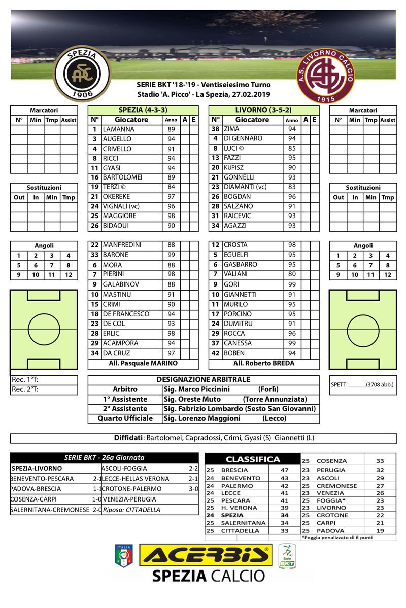 Spezia-Livorno (VEDI QUI TUTTI I DATI DELLA GARA)