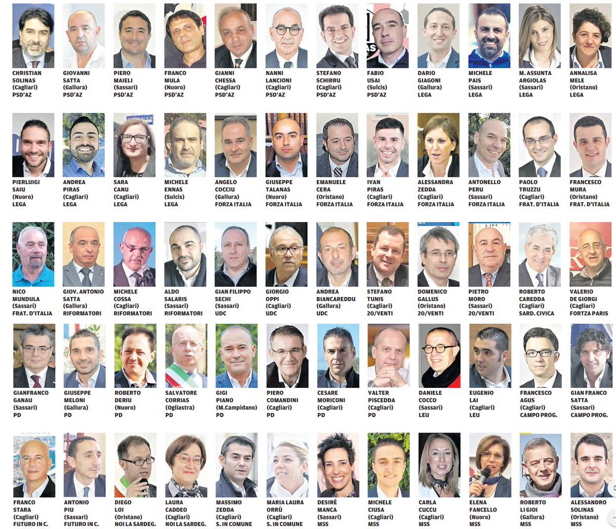 Sostenuto da Partito Sardo D'Azione Christian Solinas Presidente,Lega Salvini Sardegna,Forza Italia Berlusconi per la Sardegna,Energie per l'Italia,Unione Di Centro Sardegna, Riformatori Sardi,Fratelli D'Italia con Giorgia Meloni, Unione Democratica Sarda,Fortza Paris, Sardegna 20Venti Tunis,Sardegna Civica.