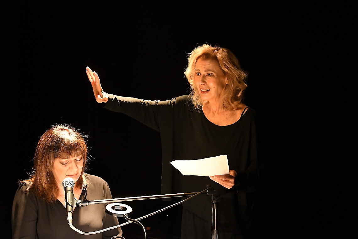 Profonda e senza sconti, la pièce mette in scena i dolorosi pensieri e gli interrogativi morali della madre di un femminicida, affrontando l’abominio della violenza di genere da una prospettiva inedita e densa di nuove riflessioni. Evocata nel titolo la laude di Jacopone da Todi, il testo di Porrino ben presto se ne discosta, pur mantenendone il riferimento all’interno di un efficace parallelismo narrativo. Quella Maria che piangeva il Cristo crocifisso, infatti, è oggi la madre che piange con diverso strazio il figlio che ha ucciso un’altra donna come lei, rendendosi colpevole di un doppio oltraggio all’esistenza femminile. Nel monologo interpretato da un’intensa Daniela Poggi i pensieri, le domande e i sentimenti di questa novella Maria sono offerti al pubblico sotto forma di una lettera che la madre scrive al figlio, per tentare di rintracciare l’origine del male che ha sporcato di sangue il candore di colui che credeva giglio. Come un coro da tragedia greca, al flusso di coscienza declamato fanno poi da complemento le canzoni scritte e cantate da Mariella Nava, con interpretazioni da brividi capaci di confezionare in un potente tutt’uno il dispositivo drammaturgico su cui poggia l’opera.
